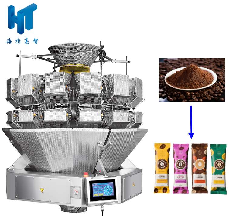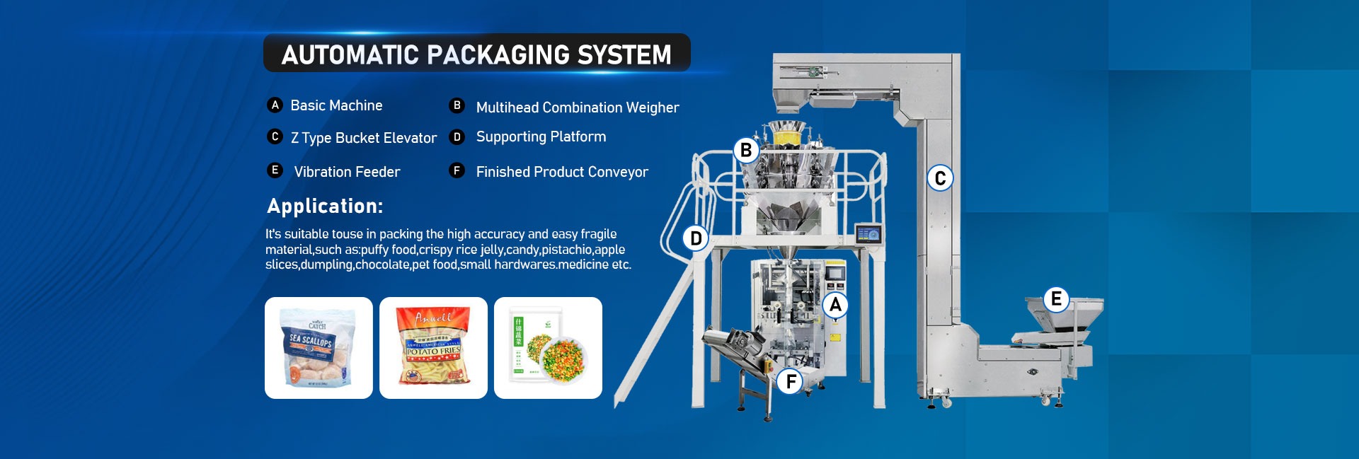 מכונת שקילה ואריזה אוטומטית להק אריזת מזון קו עם מעלית, פלטפורמה, מכונת אריזה